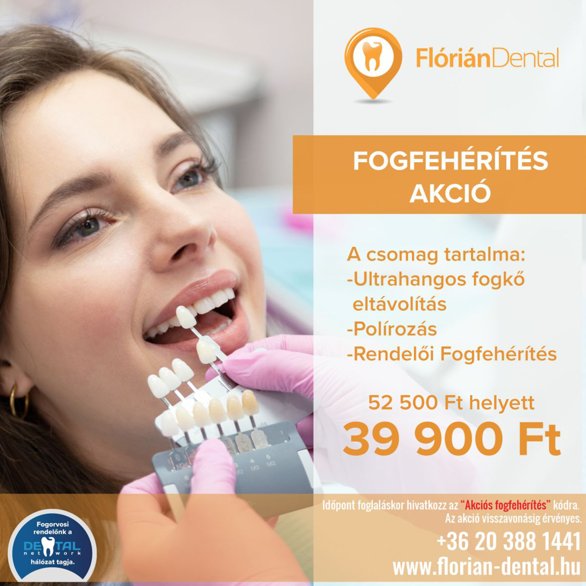 Időpont foglalásakor hivatkozzon az "AKCIÓS fogfehérítés" kódra, így érvényesíthető a kedvezmény.